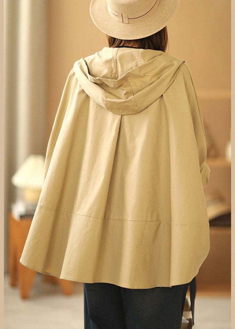 Fashion Khaki Bat Wing Sleeve Patchwork Casual Fall Hooded Coat