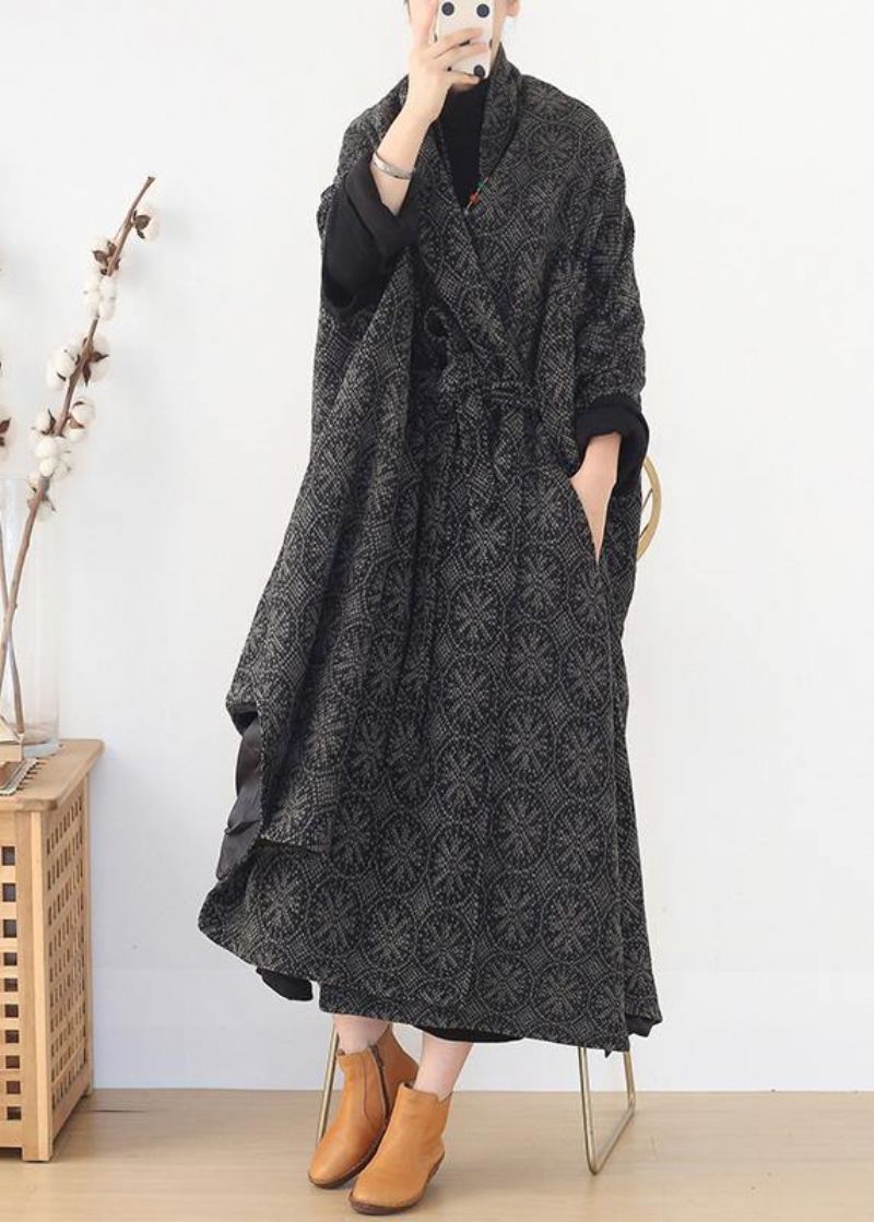 Fin Grå Uldoverfrakke Løstsiddende Mellemlængde Batwing Sleeve V-hals Damefrakker