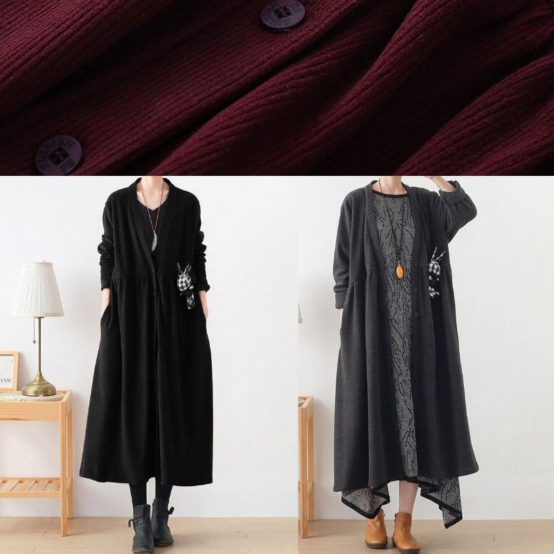Fransk V-Hals Rynket Plus Size Tøj Til Kvinder Bordeaux Æske DamefrakkerAnvendte Materialer: Bomuld Blandet