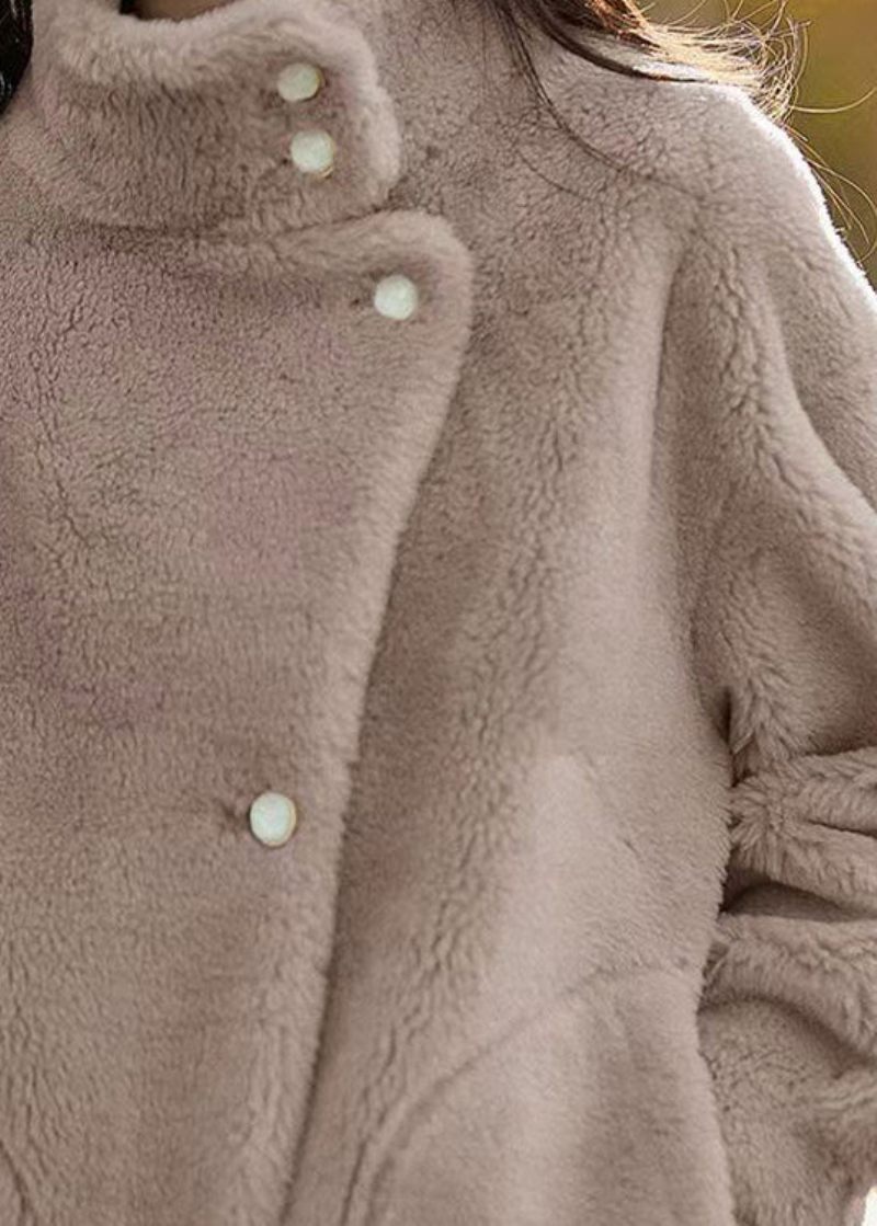 Grå Lommer Patchwork Ulden Jakke Stativ Krave Knap Vinter