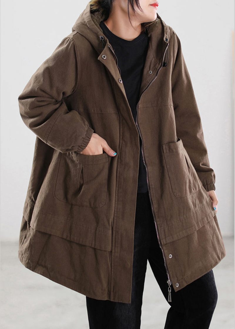 Kort Chokolade Lynlås Knaplommer Med Snøre Hættefrakker Vinter