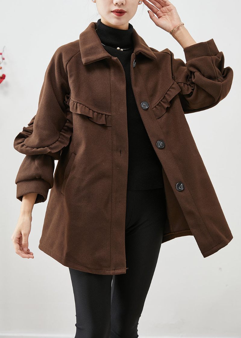 Kunst Chokolade Flæsede Patchwork Ulden Jakke Efterår