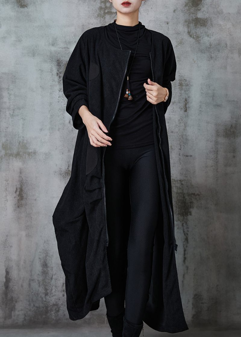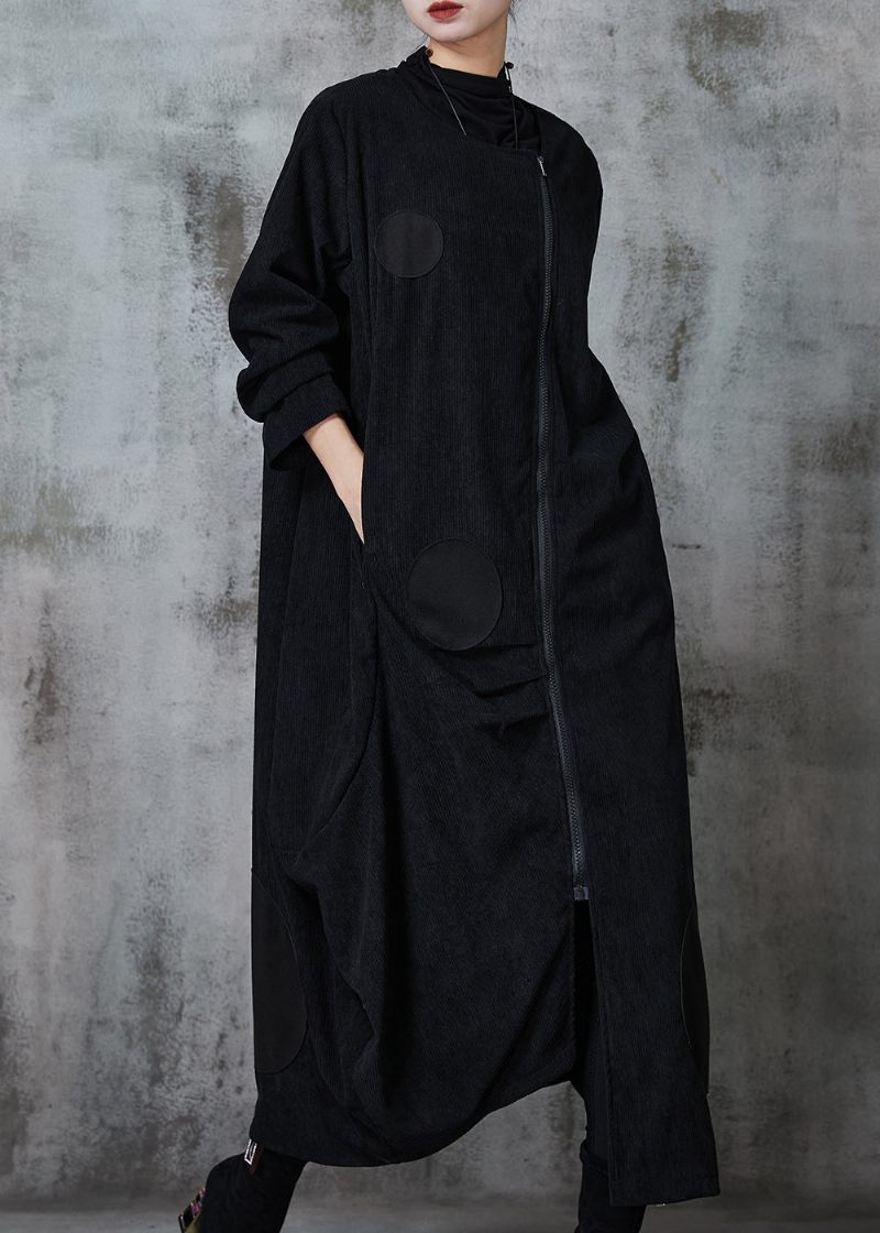 Naturlig Sort Asymmetrisk Bomuldsfrakker Med Lynlås