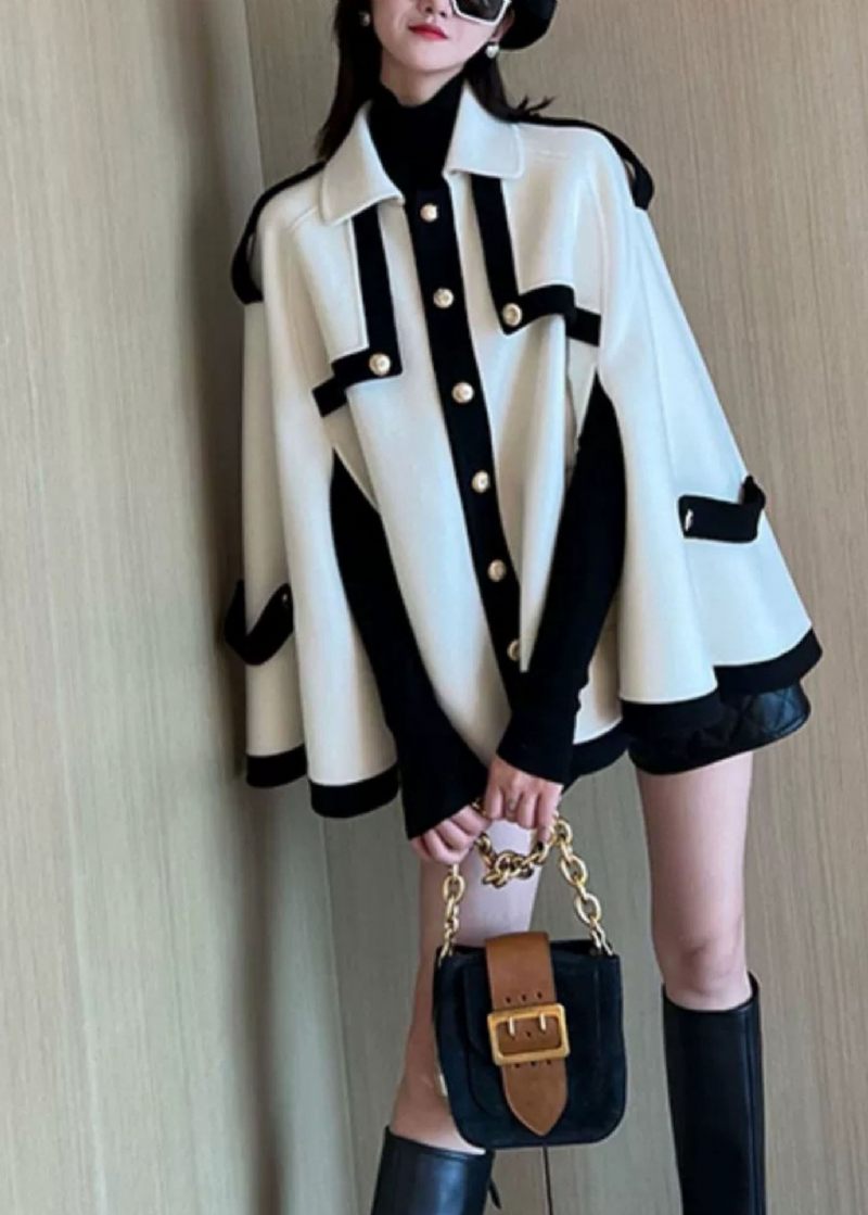 Nyhed Hvid Peter Pan Krave Patchwork Ulden Frakke Efterår