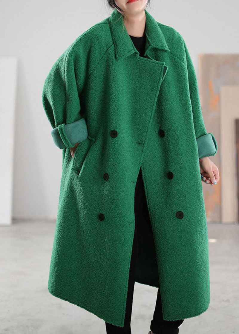 Plus Size Grøn Peterpan Krave Dobbelt Bryst Imiteret Pels Vinterfrakke