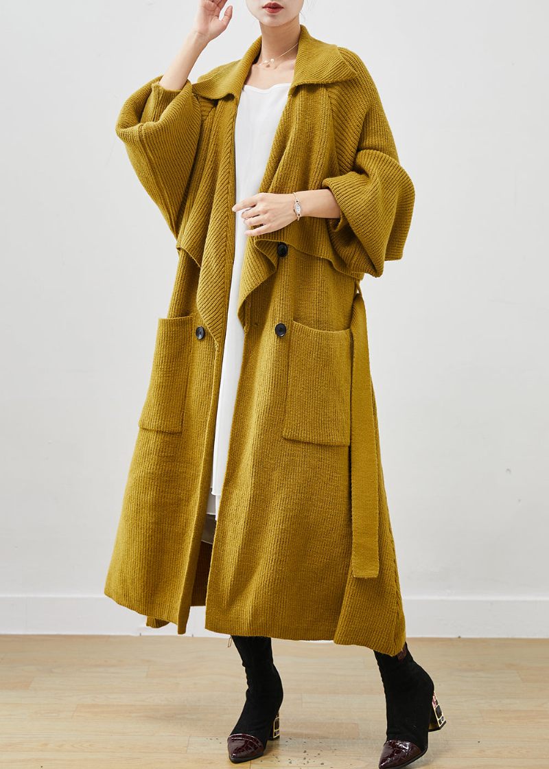 Smukke Gule Hakkede Lommer Varm Strikkede Trenchs Spring