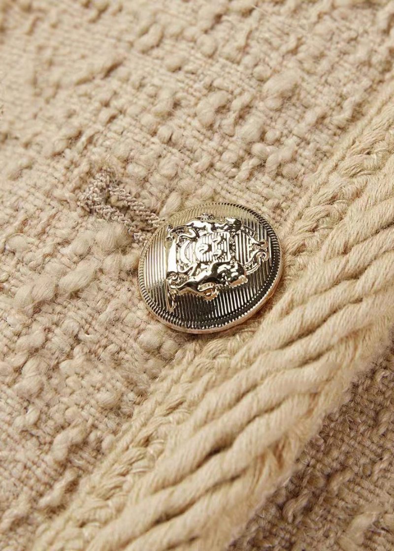 Smukke Khaki O-hals Knap Patchwork Bomuld Frakker Fall