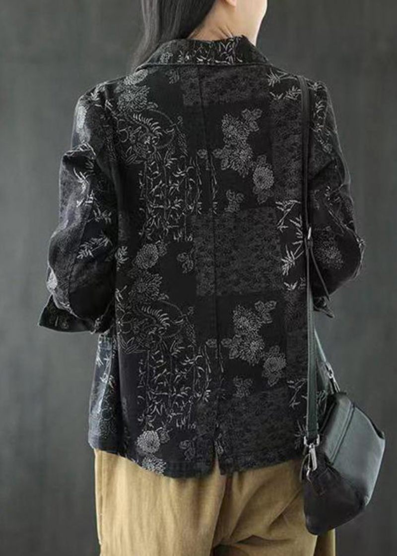 Sorte Kærv Patchwork Knap Denim Frakker Efterår